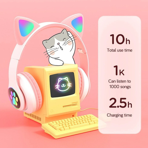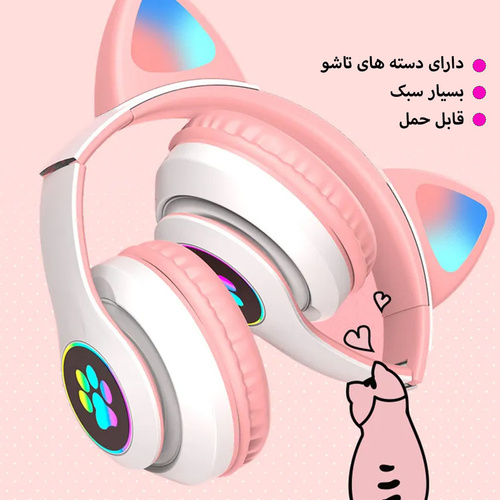هدفون بلوتوثی طرح فانتزی گربه دخترانه همراه گارانتی